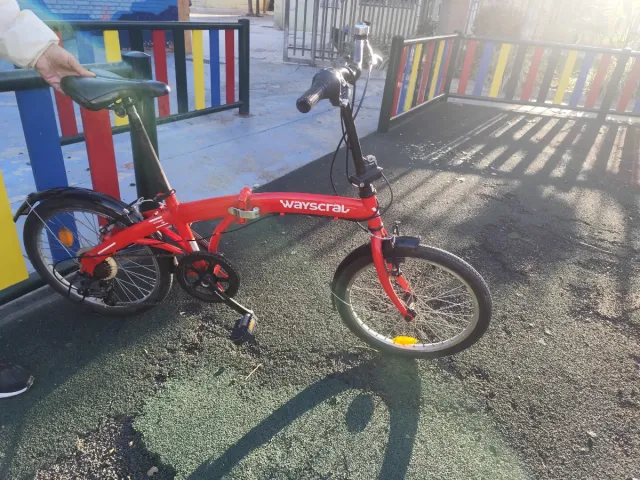 Dettagli del prodottoBicicletta pieghevole rossa del marchio Wayscral. Con telaio pieghevole, ruote da 20 pollici, freni e sella regolabile. La descrizione è stata tradotta automaticamente.