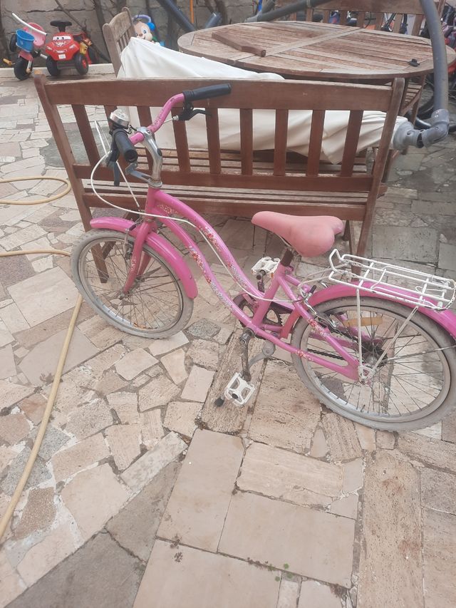 Bicicletta per bambina di colore rosa, adatta per imparare ad andare in bicicletta. - Telaio in metallo. - Manubrio regolabile. - Cestino anteriore. - Portapacchi posteriore.