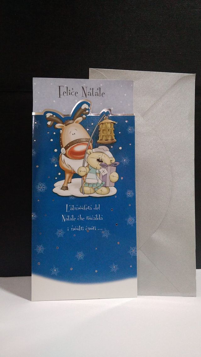 Biglietto di Natale vintage da collezione con busta "on a snowy night" auguri Natale con elementi di resina in 3D dipinti a mano. Misura 19x9 cm