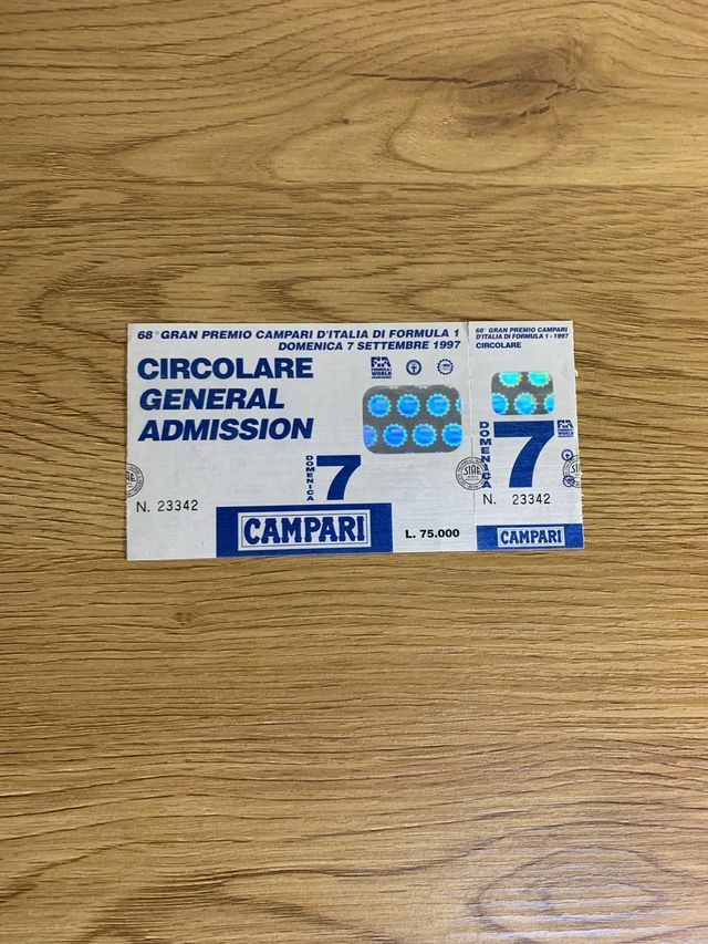 Dettagli del prodottoBiglietto gran premio di monza formula 1 risalente al 1997. In ottime condizioni come da foto, non è stato plastificato.