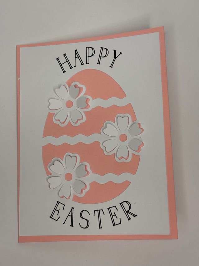 Biglietto di auguri per la Pasqua con un design a tema. - Decorazione a forma di uovo. - Motivo floreale. - Scritta Happy Easter.