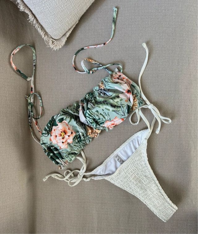 Bikini Shein floreale verde e bianco