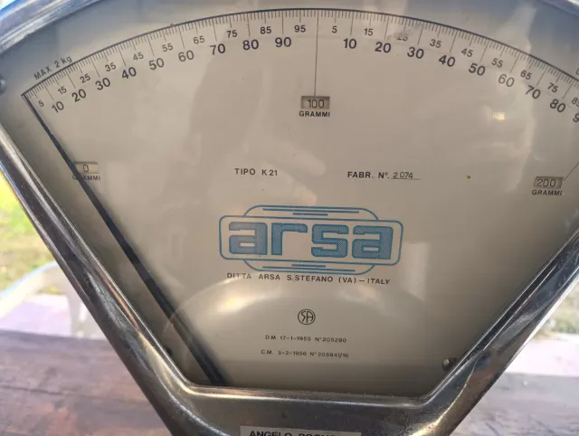 Dettagli del prodottoBilancia meccanica Arsa, modello Tipo K21, con una capacità massima di 2 kg.