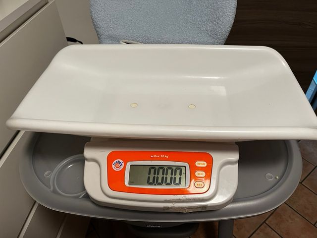 Bilancia digitale per neonati e bambini, ideale per monitorare la crescita. - Display digitale chiaro. - Design ergonomico e sicuro. - Portata massima 20 kg.