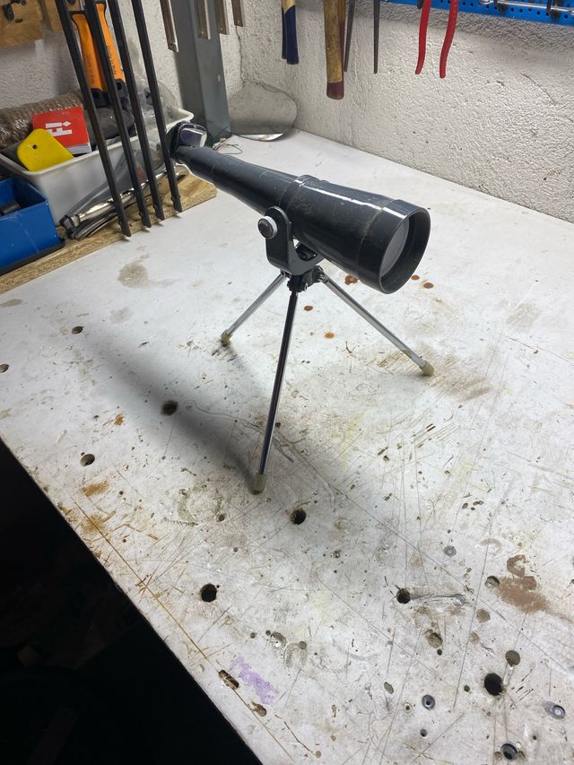 Binocolo nero con treppiede. - Ideale per osservazioni. - Struttura in metallo.