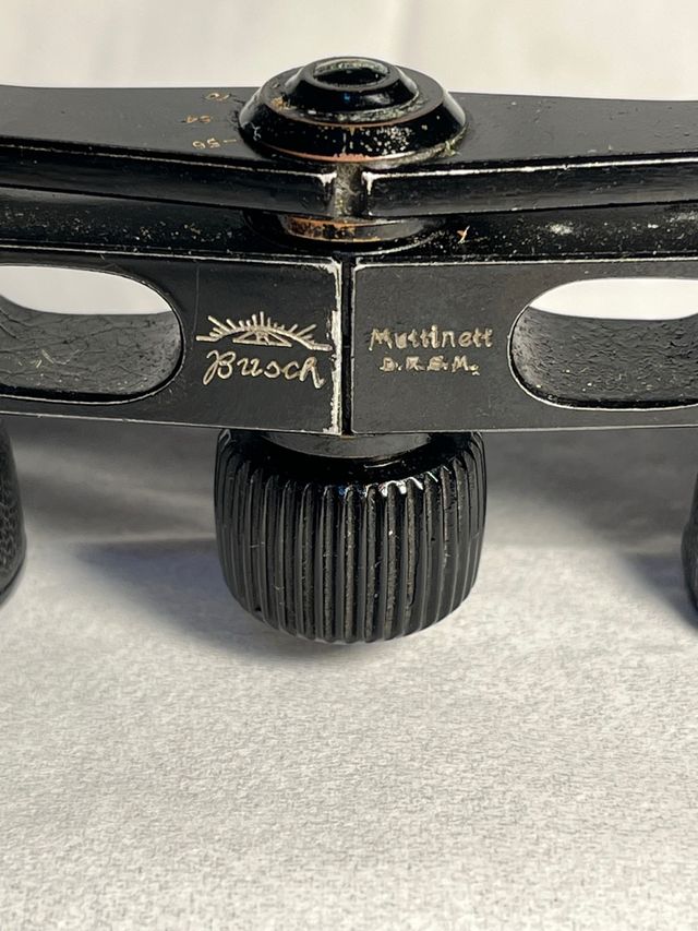Binocolo da teatro, modello WW2, con marchio Busch e Mutinett. - Design in metallo nero. - Dettagli incisi sul corpo.