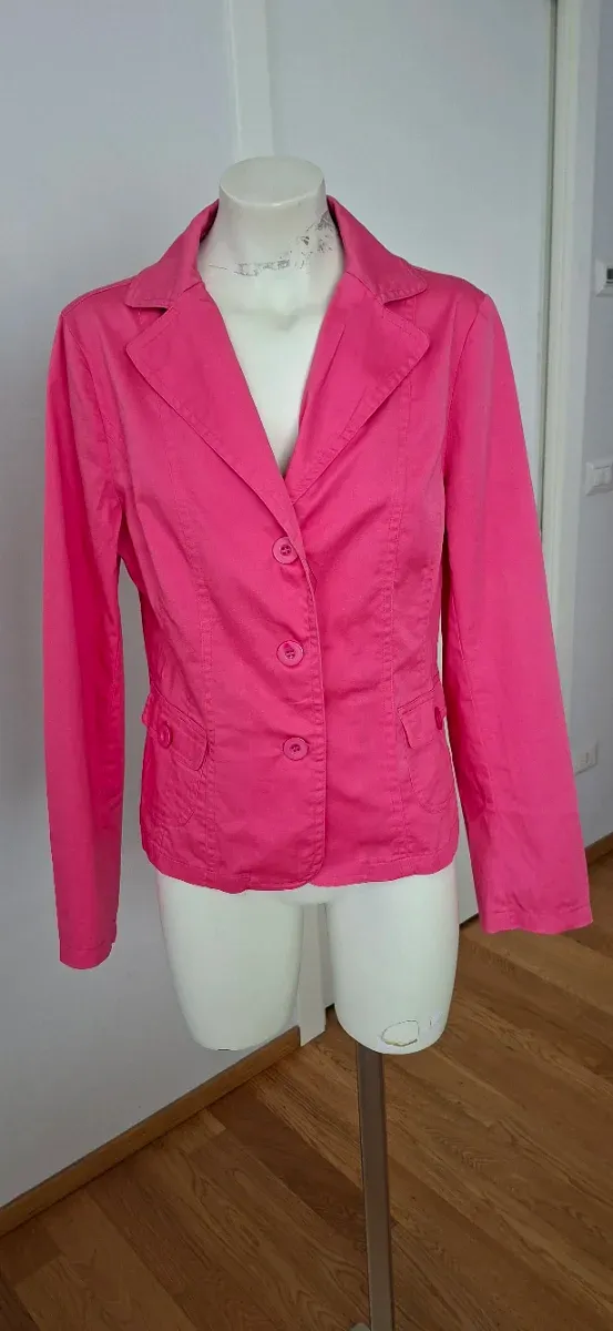 Bellissimo blezer donna dal colore acceso. In cotone e ottimo da abbinare sui jeans o altri pantaloni primaverili. Tessuto fresco. Indossato aderisce bene adattando al corpo