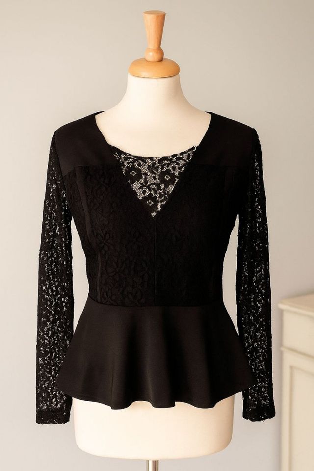 Blusa nera in tessuto effetto pizzo, taglia S/M