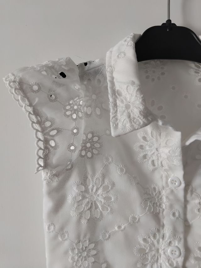 Dettagli del prodottoBellissima blusa bianca per bambina del brand Shein, con delizioso ricamo Sangallo.