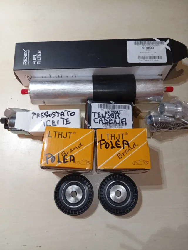 Dettagli del prodottoFILTRO CARBURANTE, 2 PULEGGE PER CINGHIE DI SERVIZIO, TENDICATENA DI DISTRIBUZIONE, PRESSOSTATO PER LA MISURAZIONE DELLA PRESSIONE DELL'OLIO. VERIFICATE CON LE FOTO LA COMPATIBILITÀ CON IL VOSTRO MODELLO, IN QUANTO NE ESISTONO DIVERSE VERSIONI. LOTTO INDIVISIBILE La descrizione è stata tradotta automaticamente.