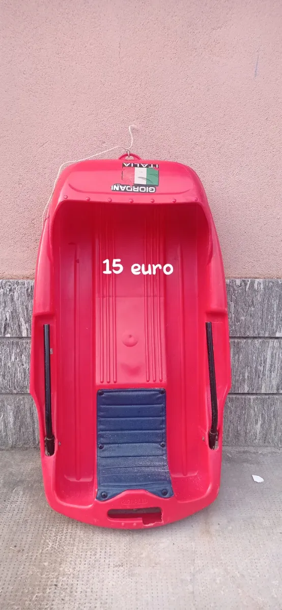 Dettagli del prodottoBob da neve biposto, lunghezza 1 m, marca Molinari, perfetto per divertirsi sulla neve. É stato riparato ripristinando la funzionalità del bob (vedere foto 2). Utilizzabile senza problemi. Possibilità di trasporto a domicilio fino ad un max di 25 km da Sassuolo o Casalgrande (trasporto 15 euro)