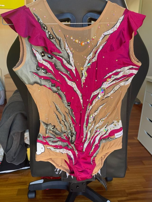 Dettagli del prodottoBody per ginnastica ritmica decorato con strass e paillettes.