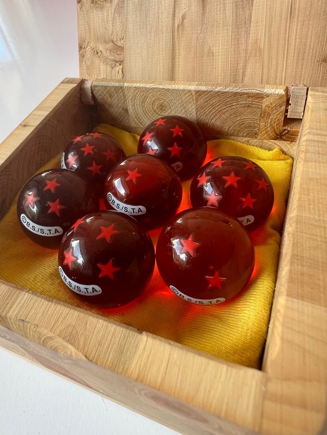 Dettagli del prodottoSet di 7 sfere del Drago con stelle rosse. Design ispirato alla serie. Ogni sfera ha un numero di stelle inciso. Include scatola. La descrizione è stata tradotta automaticamente.