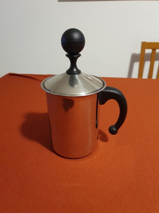 Montalatte in acciaio ideale per preparare cappuccini. In ottimo stato. capacità max 1 lt vedere ultima foto