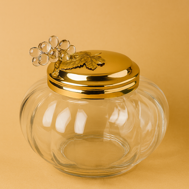 Bomboniera in Cristallo con Coperchio Dorato a Grappolo d'Uva