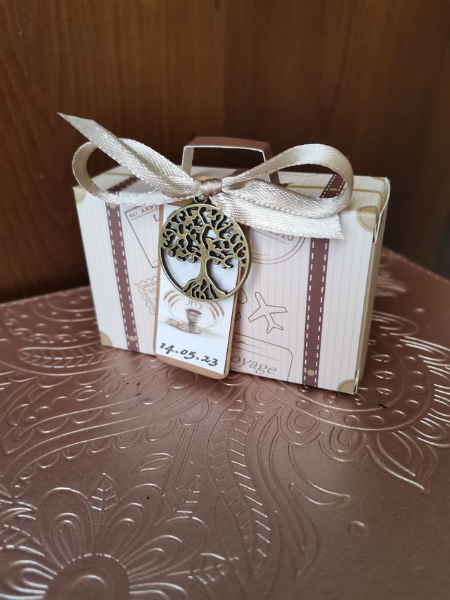 Dispone tantissimi pezzi 12 valigie Complete di ciondolo albero della vita e nastro Senza biglietti personalizzati