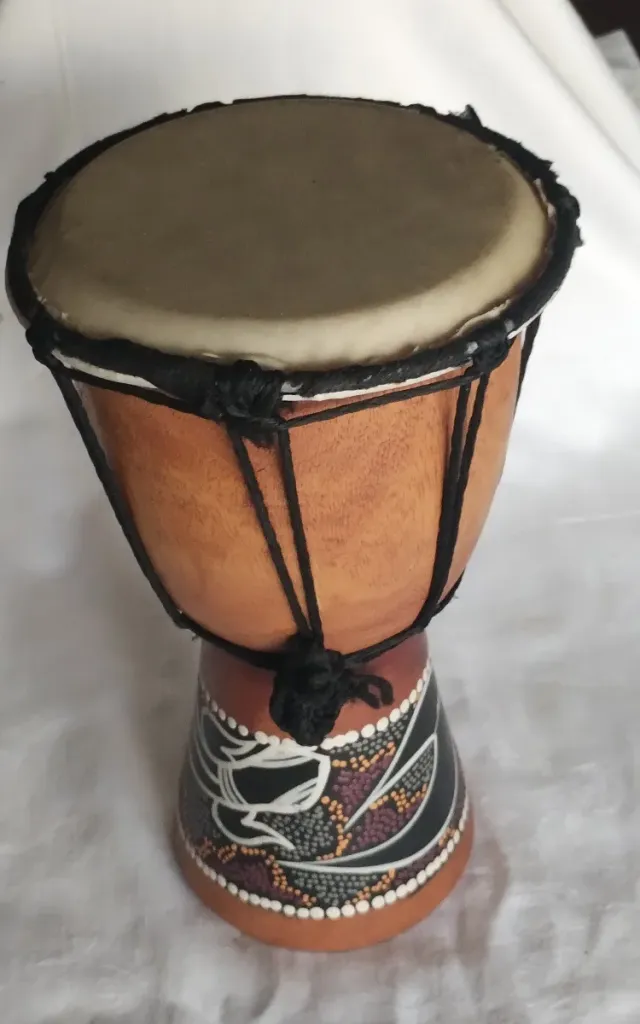 Dettagli del prodottoBongo africano fatti a mano con un design unico e colorato. Perfetto per aggiungere un tocco etnico alla tua casa o per suonare.