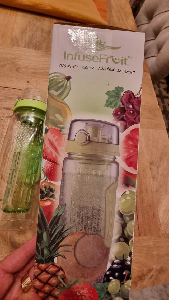 Borraccia per infusione di frutta per acqua aromatizzata da 900ml. Nuova mai usata. Completa di astuccio termico e scatola.