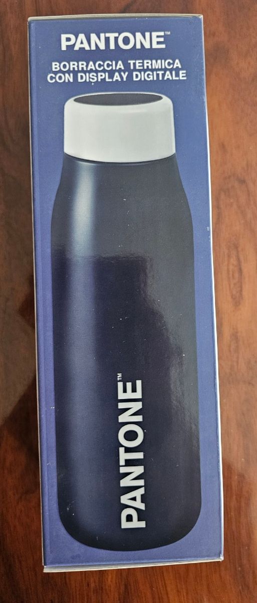 Dettagli del prodottoBorraccia termica Pantone, colore blu scuro, nuova.