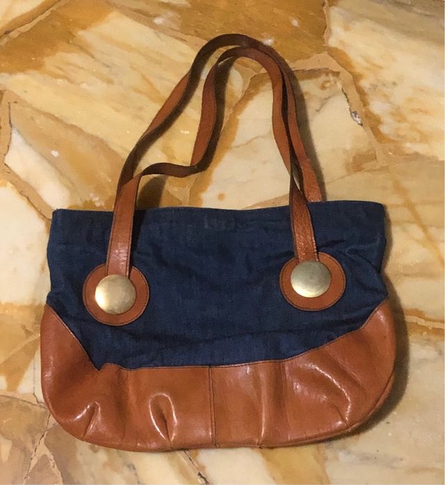 Borsa Artigianato Fiorentino Pelle e Tela Blu