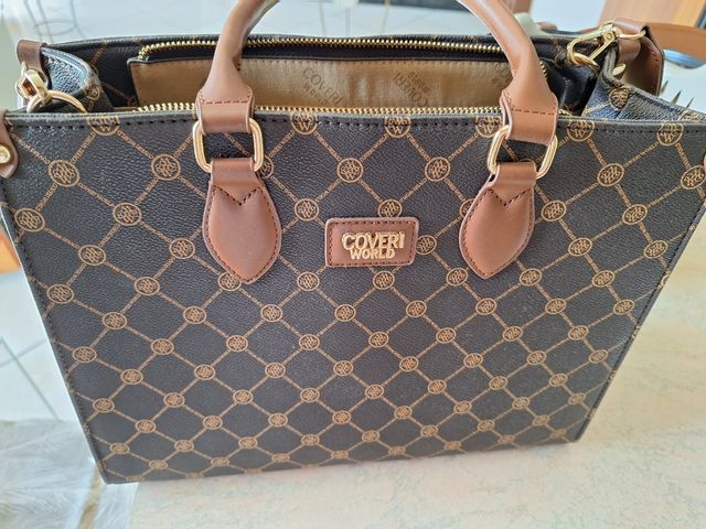 Borsa Coveri World tracolla marrone e oro