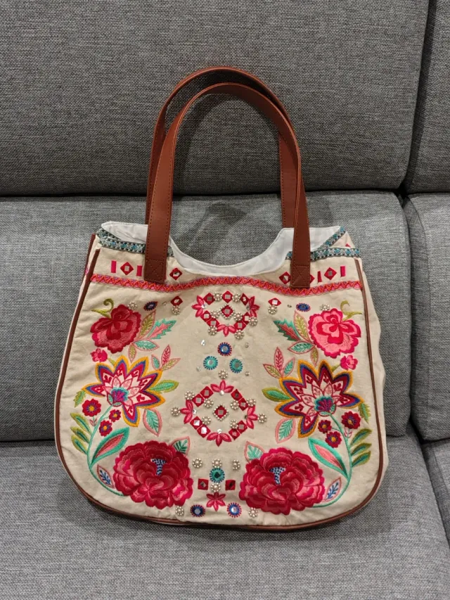 Borsa donna con ricami floreali