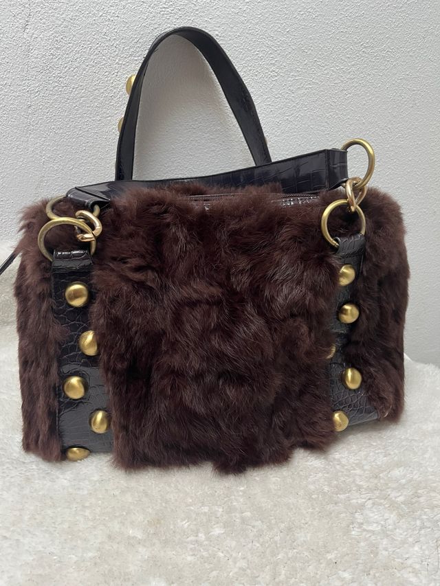 Borsa donna ecopelle marrone e oro