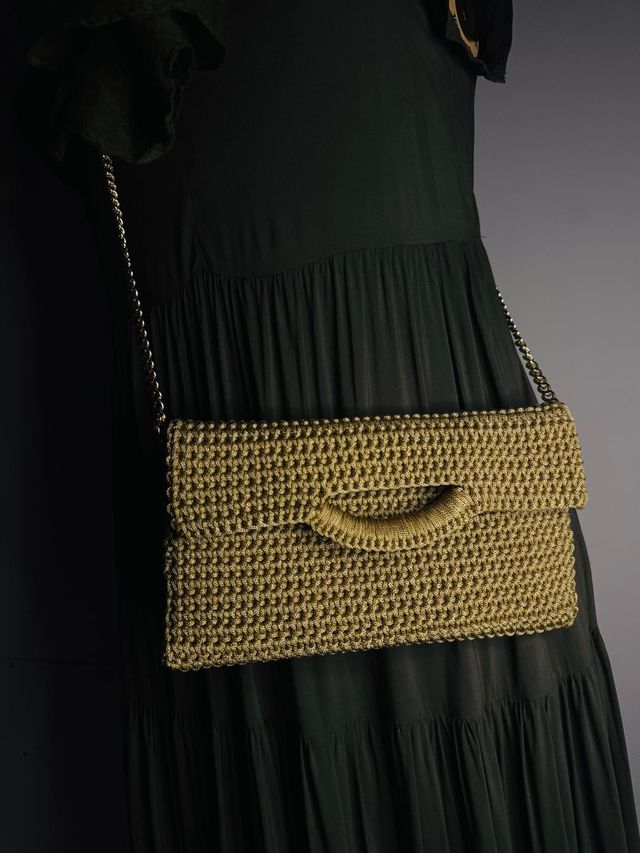 Borsa intrecciata oro con manico e catena