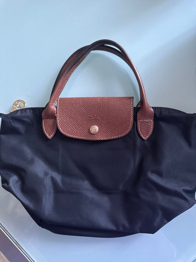 Borsa Longchamp Pelle e Tessuto Nero Marrone