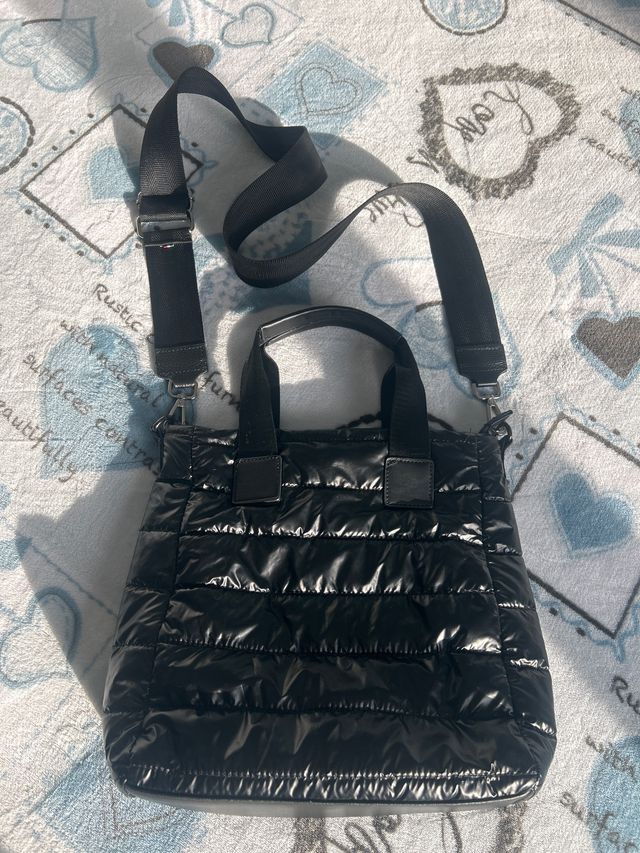 Borsa nera tessuto ed ecopelle
