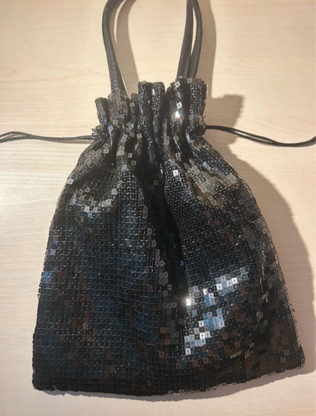 Borsa paillettes nero argento