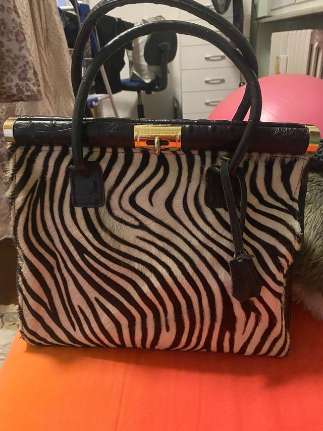 Borsa pelle e cavallino zebra