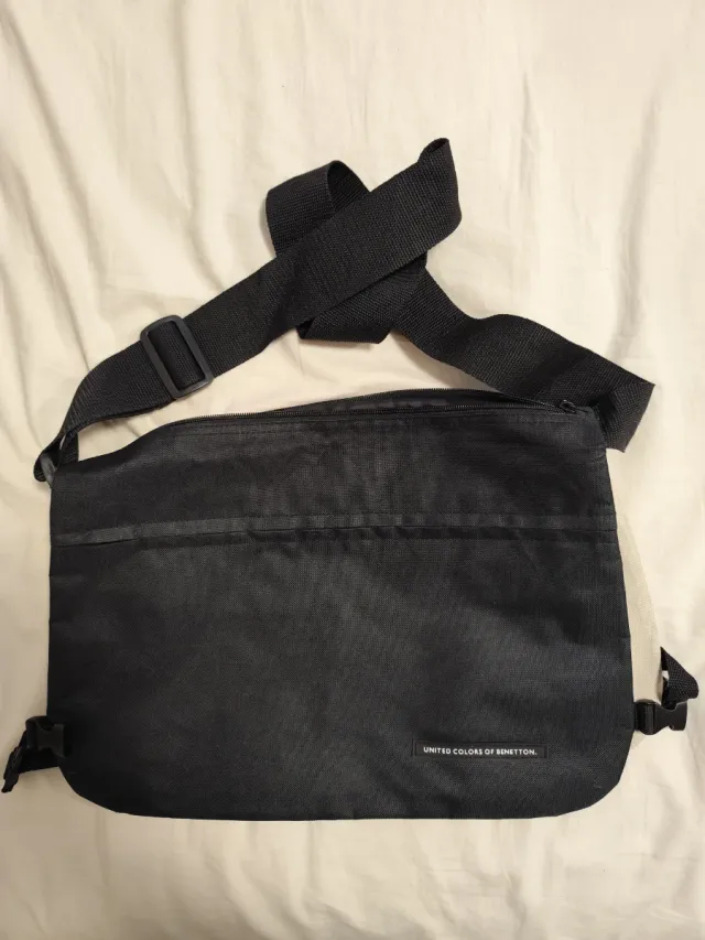 Borsa porta documenti Benetton nera e beige