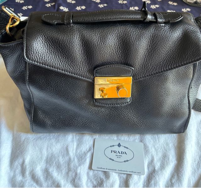 Borsa “Prada” nera in vitello daino, mod BR5034