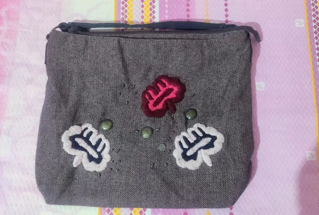 Borsa tessuto grigio e rosa con applicazioni