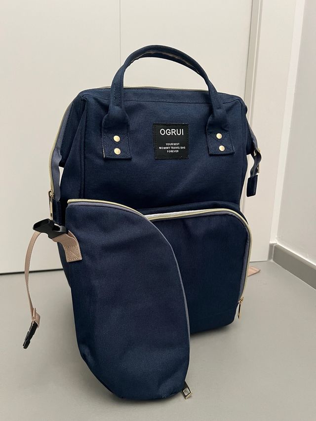 Borsa/zaino passeggino OGRUI, ideale per mamme e viaggi. - Colore blu scuro. - Tessuto resistente. - Tasche esterne. - Manici superiori e tracolla.