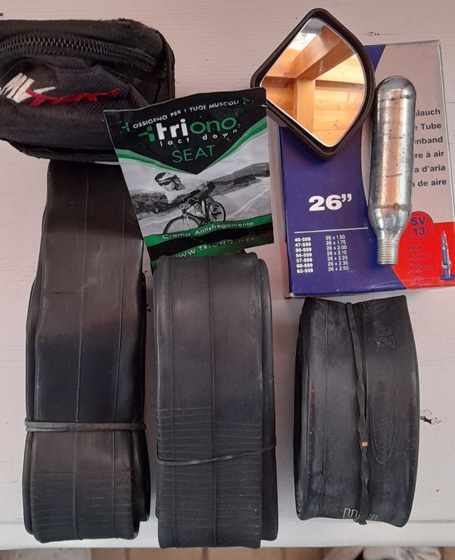 Borsello porta camera d'aria con tre camere daria più bomboletta azoto più specchietto più crema