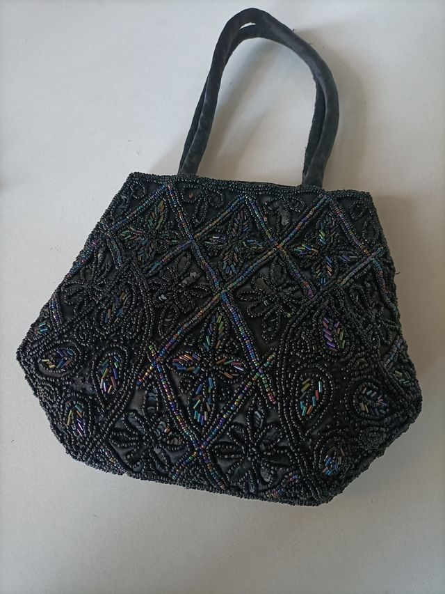 borsetta da sera nera con decorazioni, usata pochissimo