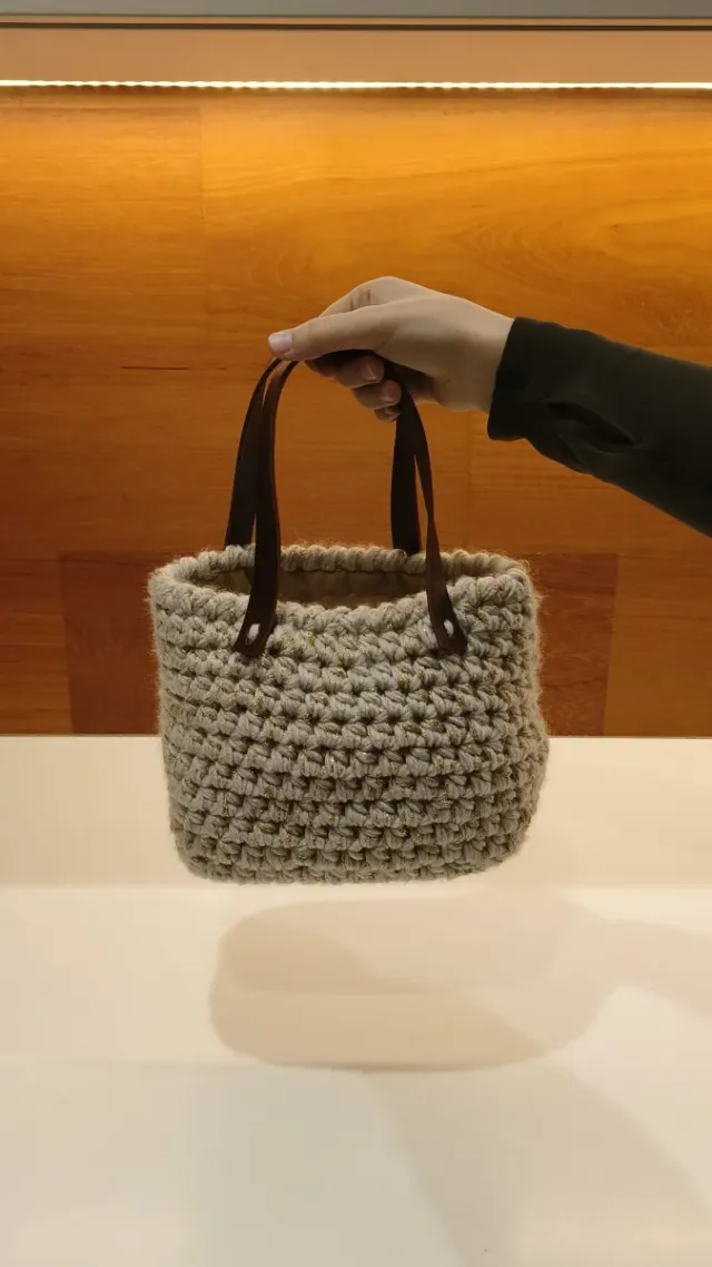 Borsetta uncinetto e pelle vera beige/marrone