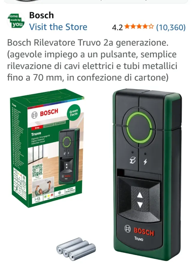 Dettagli del prodottoRilevatore Bosch Truvo, seconda generazione. Facile da usare con un solo pulsante.