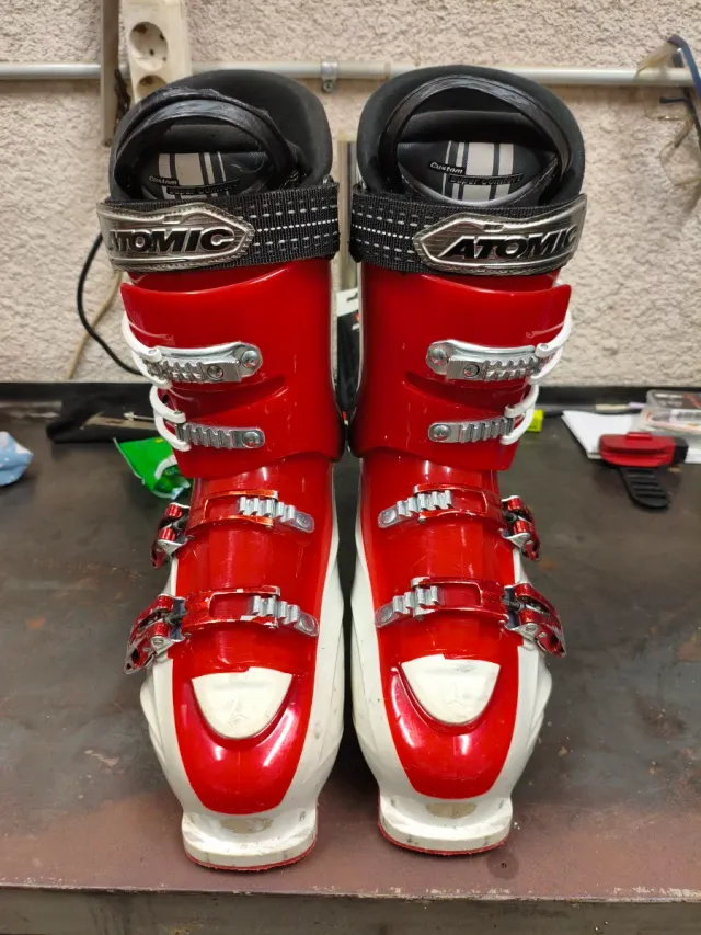 Dettagli del prodottoUsati ma in buone condizioni. Taglia 30-30'5, corrisponde a 45-46. Molto comodi. Chiusura con fibbie. Cinturino superiore. Marca Atomic visibile. La descrizione è stata tradotta automaticamente.