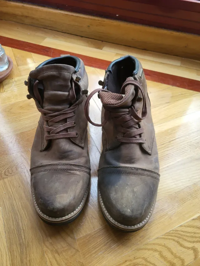 Dettagli del prodottoStivali in stile Oxford, ideali per moto o uso casual. Realizzati in pelle marrone. Taglia 44 - Chiusura con lacci. Design a stelo medio. Punta e caviglie rinforzate. La descrizione è stata tradotta automaticamente.
