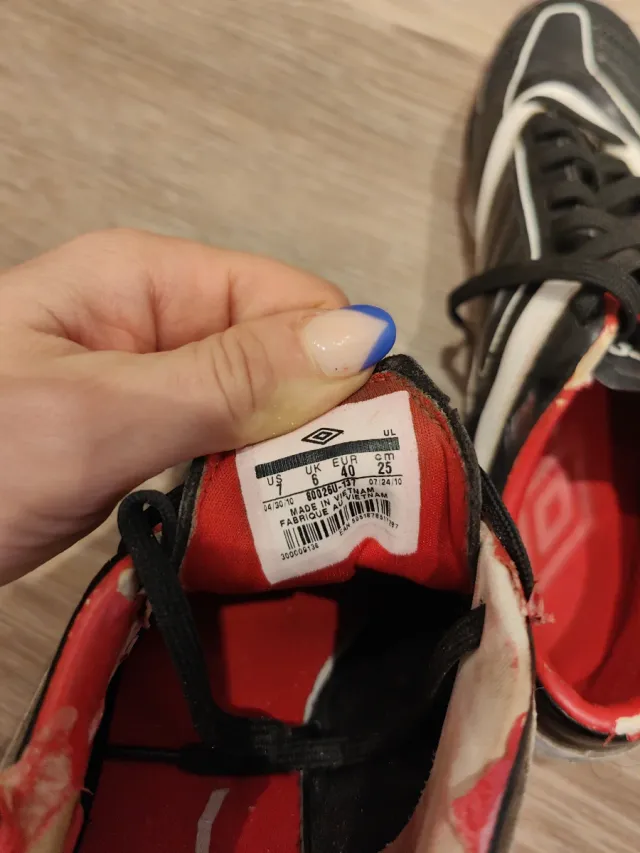 Dettagli del prodottoScarpe Umbro per rugby o calcio in taglia 40. Le scarpe funzionali sono perfette, non molto usate ma conservate per anni, quindi presentano un aspetto usurato. Le ho usate per partite di rugby. I tacchetti sono in ottime condizioni. - Prodotte in Vietnam. - Colore nero con dettagli bianchi. - Modello 800260-137. La descrizione è stata tradotta automaticamente.