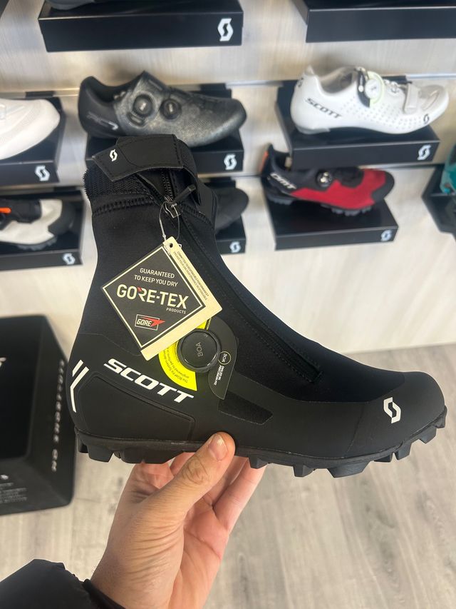 Dettagli del prodottoStivali invernali Scott per ciclismo da montagna con tecnologia Gore-Tex per mantenere i tuoi piedi asciutti. - Chiusura BOA. - Suola con tacchetti per aderenza. - Design nero con dettagli bianchi. La descrizione è stata tradotta automaticamente.