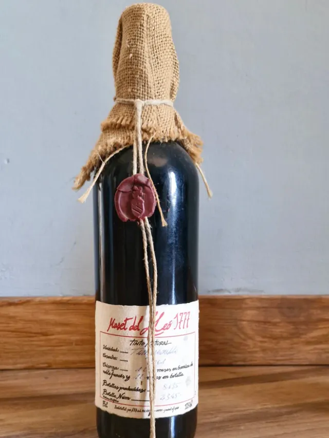 Dettagli del prodottoBottiglia di vino Maset del Lleó 1777. - Varietà: Rosso - Vendemmia: 2001 - Invecchiamento: 12 mesi in botte e 24 mesi in bottiglia. - Produzione: 8435 bottiglie prodotte. - Numero di bottiglia: 2345. La descrizione è stata tradotta automaticamente.