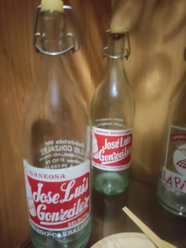 Dettagli del prodottoSet di bottiglie antiche di gassosa del marchio José Luis González. - Bottiglie di vetro con chiusura a balestra. - Etichette originali con design vintage. - Ideali per collezionisti o decorazione. La descrizione è stata tradotta automaticamente.