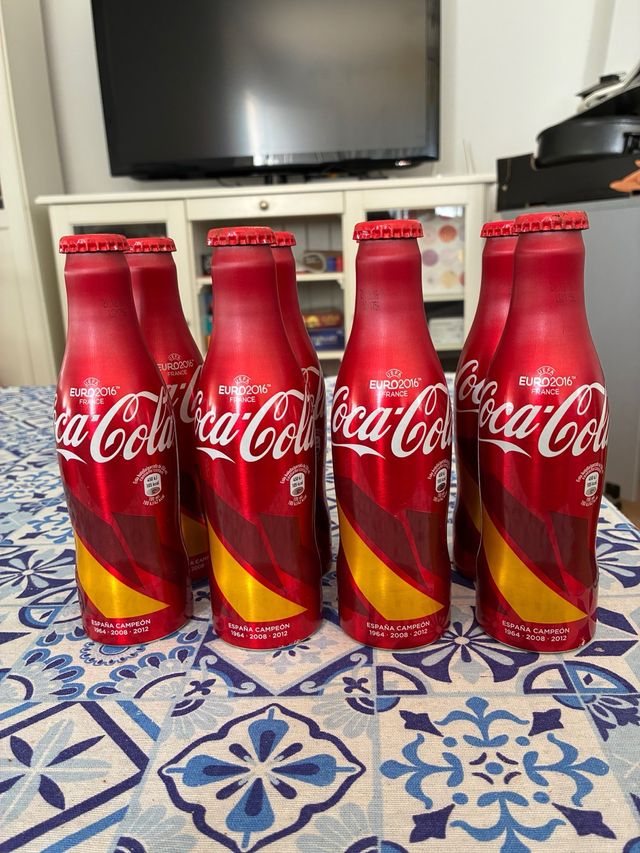 Dettagli del prodottoSet di 8 bottiglie di Coca-Cola in edizione speciale Euro 2016. Design con riferimento alle vittorie della Spagna nel 1964, 2008 e 2012. Colori rosso e oro. Non aperte, con i tappi e piene. Il set è disponibile per 35€. Prezzo per unità 5€ La descrizione è stata tradotta automaticamente.