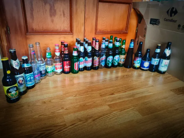 Dettagli del prodottoRaccolta di bottiglie di birra vuote provenienti da diverse parti del mondo. Ideale per collezionisti o decorazioni