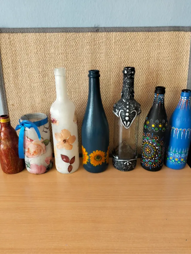 Dettagli del prodottoConjunto de botellas decoradas artesanalmente.