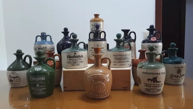 Dettagli del prodottoVendo collezione vintage di bottiglie/decanter di whisky in ceramica (anni '70), in ottime condizioni. Include marchi classici come Glenfiddich, Chequers, Tullamore Dew, King’s Ransom, Long John, Grant’s, Langside, tra gli altri. Pezzi originali in gres scozzese e irlandese, ideali per collezionisti o decorazione vintage/bar a tema. Tutte vuote e ben conservate. Prezzo del lotto completo: 300€. Prezzo per unità: 35€. Prezzi negoziabili. La descrizione è stata tradotta automaticamente.